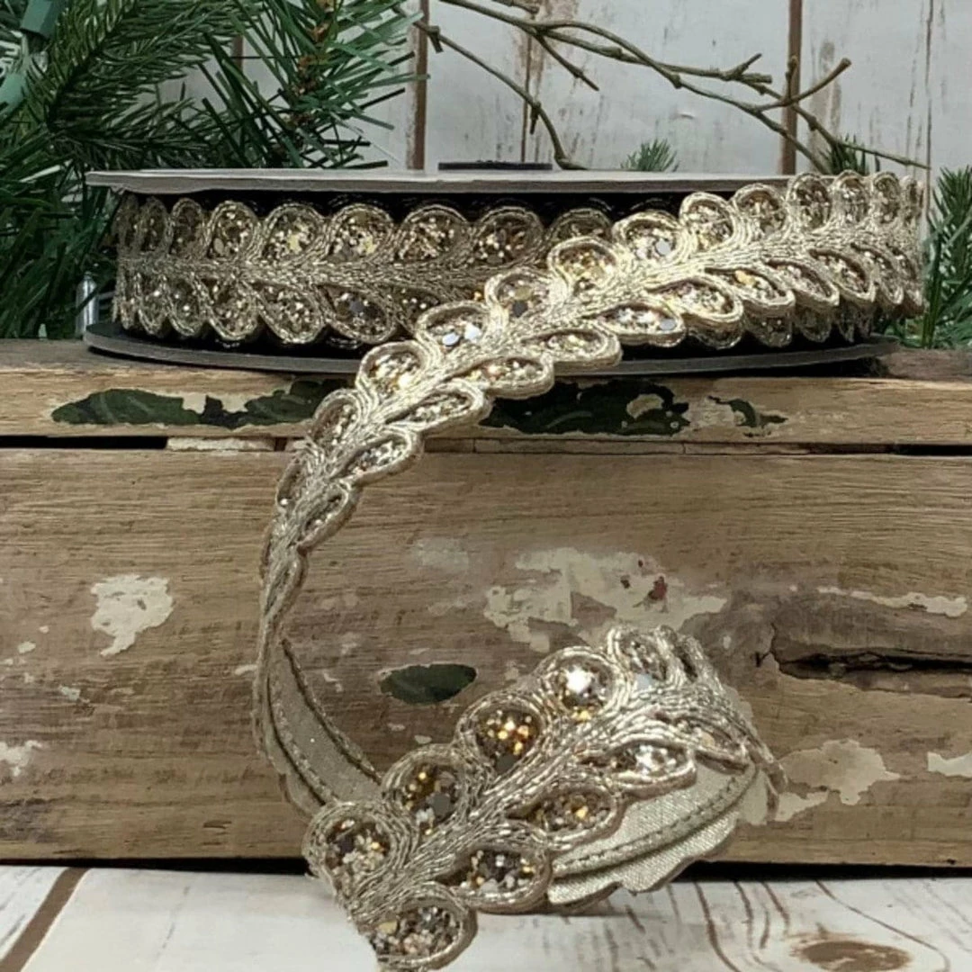 Best deal π The β Christmas Palace 1″ X 10YD PLATINUM GLITTER LEAF RIBBON Ribbon & Bows β¨
