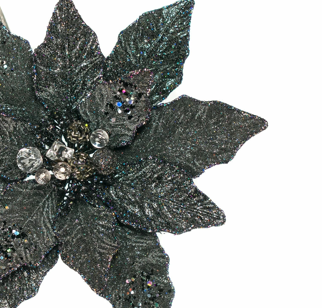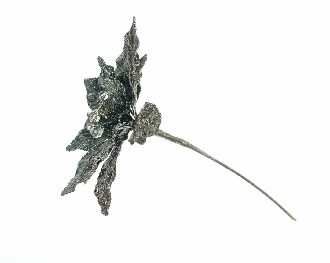 For over 200 years, the poinsettia has been a holiday symbol. Because of its vivacious tones and dark green leaves, its popularity couldn’t help but spread quickly during the holiday season. But this glamorous Black Glittered Poinsettia Stem takes a uniquely warm, inviting, and glamorous approach to the famous flower. Its combination of nature and craft inspiration makes it an excellent addition to your entertaining ambiance.