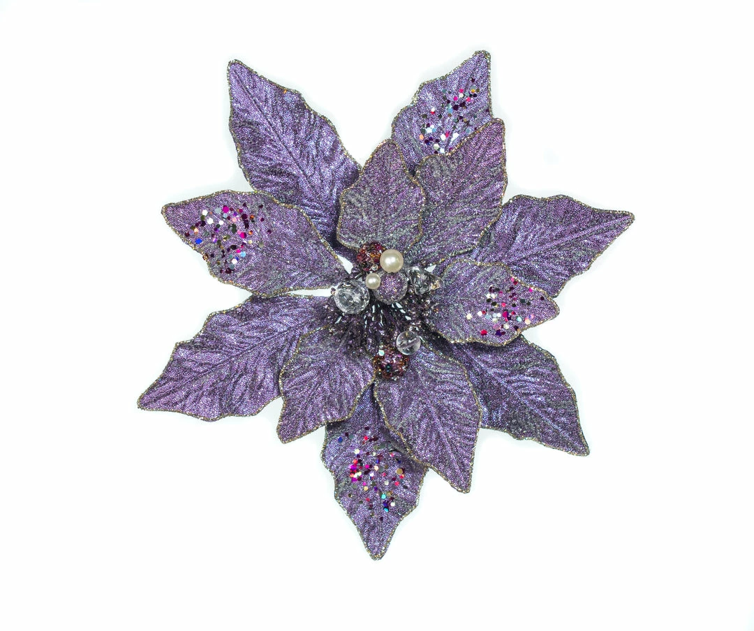 Brand new π The π Christmas Palace 12″ PURPLE GLITTER POINSETTIA SET OF 6 β