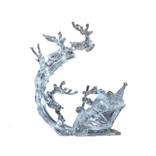 Elevate your home using this Reindeer Flight & Sleigh Led light. Plays 8 Christmas Songs, this beautifully crafted product provides a radiant glow to any room. Go ahead and light up your decor!