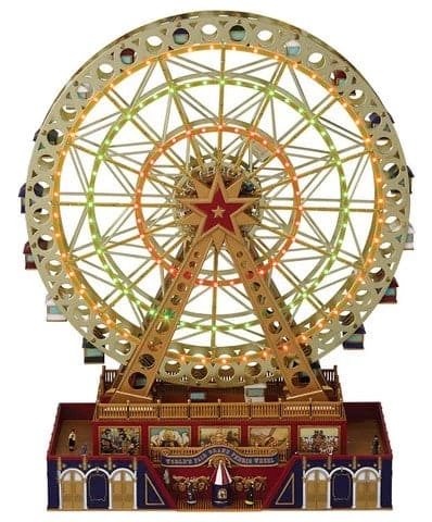 The World’s Fair Grand Ferris Wheel from Mr. Christmas brings the magic of an amusement park into your home. A replica amusement ride with high-end finishes, there’s nothing else like it. With a real metal wheel and hand-painted details, you’ll be reminded of your favorite childhood ferris wheel memories. Mini LED lights decorate the ride and play a light show while it turns. Choose between 25 Christmas carols and 25 year-round classics all arranged in a fairground calliope style. Volume control allows you to enjoy with or without music, and adapter operation makes for easy setup. Approximately 15″ tall, the Ferris wheel will be sure to make a statement and be a cherished part of your home for years to come.