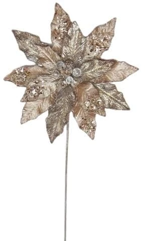 Our alluring glitter poinsettia stem, complete with its copper petals lined with glitter, will add color and richness into your holiday decor. The beautiful glittery center adds an elegant touch to this classic stem, perfect for decorating any tree, wreath, or garland this holiday season.