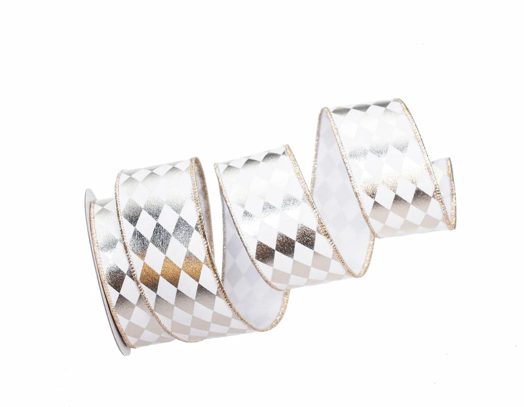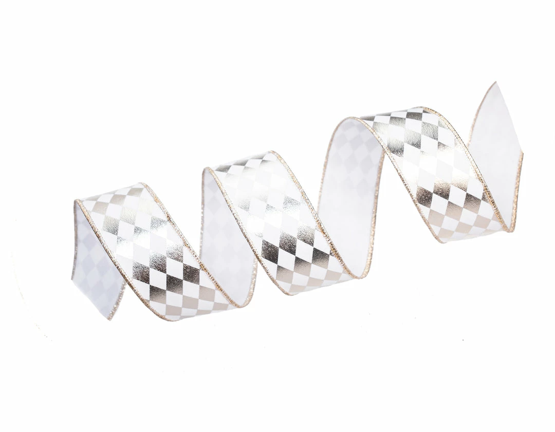 This platinum metallic and white checkered pattern is the perfect accent to fill your space with vibrant cheer. This wired ribbon can be used to create a holiday bow that will stand the test of time.