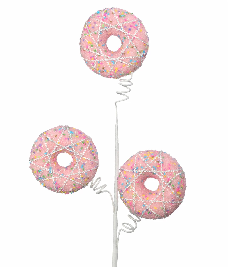You βdonutβ want to miss this delicious faux donut spray. It has three realistic foam donuts, all with pink icing and each is coated in iridescent glitter on the backside and colorful sprinkles on the icing side. Pair with sweet styles of ribbon and embellishments for a scrumptious design.