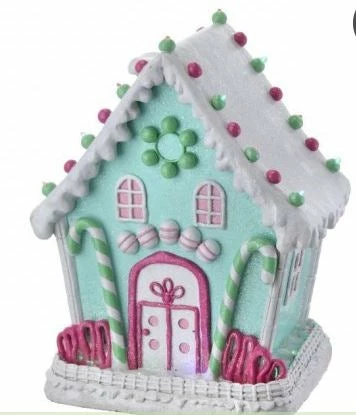 Stun your guests with this amazing gingerbread house! It features hues of pastel colors, LED lights and is powered with an adapeter.