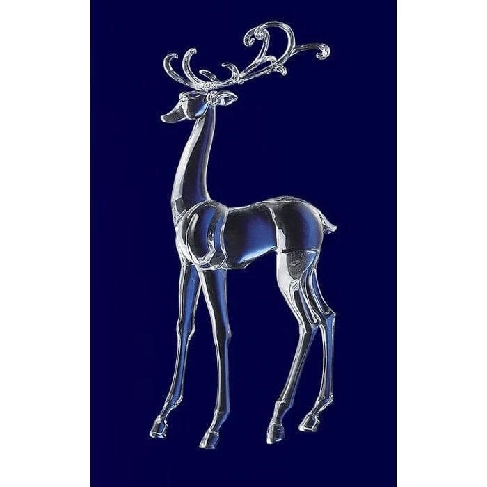 This gorgeous acrylic figurine of a standing deer is a must have. It has a smooth surface and showcases an elegant pose into its design. It would compliment a fireplace or mantel perfectly. Antlers are removable for easy storage and attach with strong magnets.
