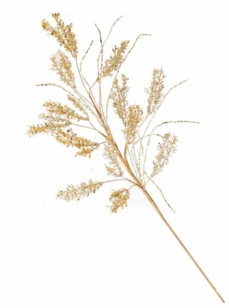 This glitter twig branch is unique. It features cascading branches in twig clusters covered in Champagne glitter and sequences. Add to any decor for a stunning look.