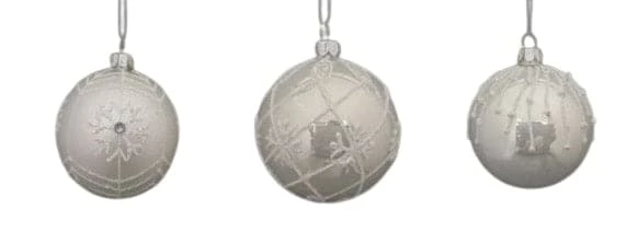 Add instant charm to your winter wonderland with these adorable white on white glass ornaments. Featuring white glittered and jeweled designs, this is a perfect set to add to your collection.