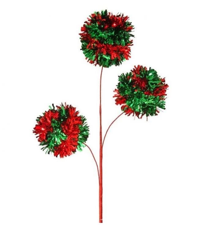 Outlet π The π Christmas Palace 30″ RED & GREEN TINSEL BALL SPRAY SET OF 6 π―