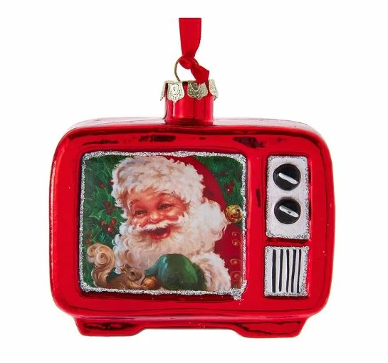 Kurt Adler’s glass Santa television ornament is a festive addition to any holiday dΓ©cor or Christmas tree. It features a red and silver glittered glass television with a traditional image of Santa with a squirrel on screen.