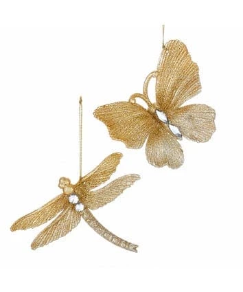 These gold butterfly and dragonfly ornaments are a wonderful addition to any home or holiday dΓ©cor. Each plastic ornament in this assortment is expertly decorated in shades of gold glitter and have a clear gem stone body.