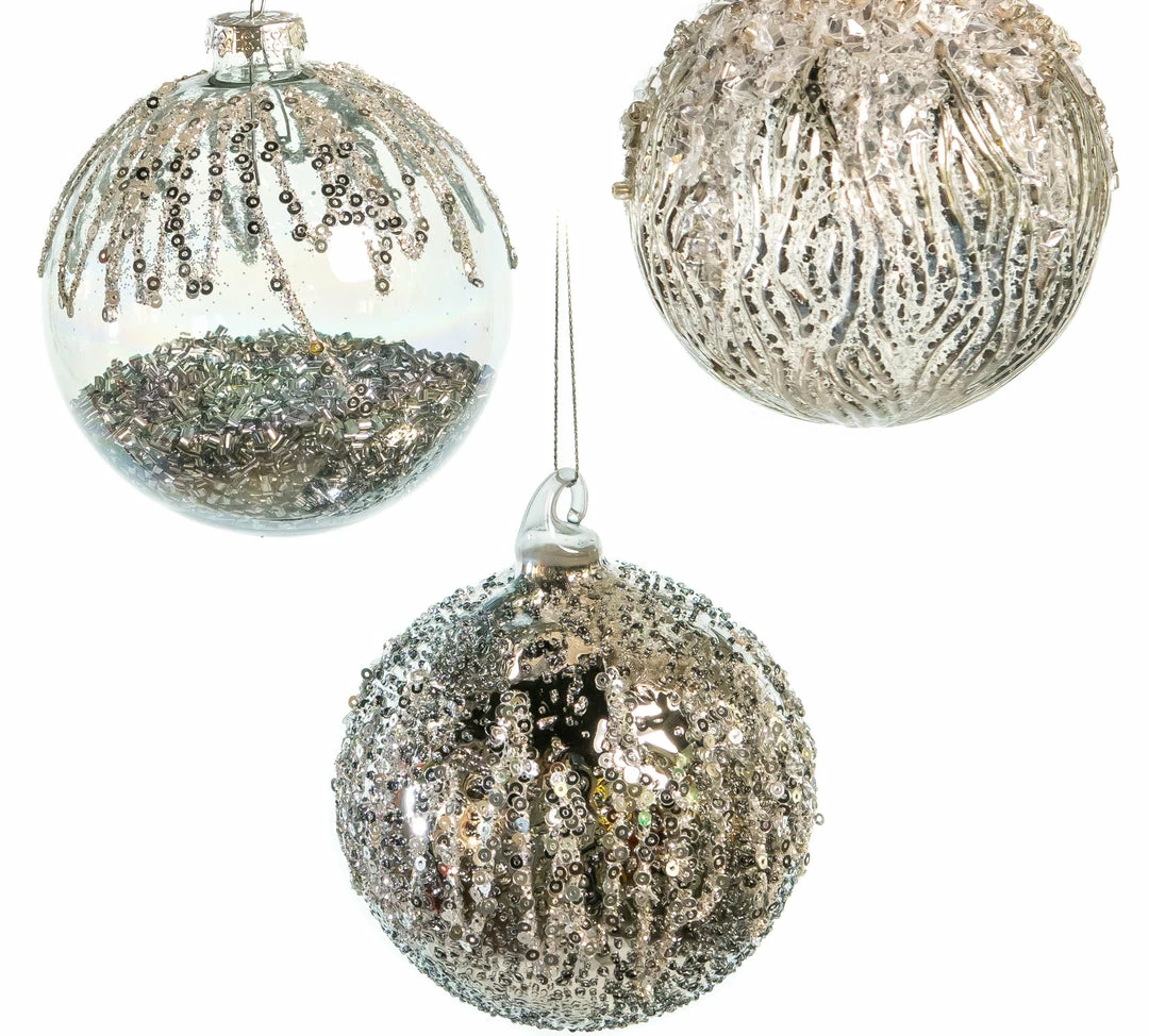 Give your holiday decor a touch of flair with this stunning set of glass ornaments. These 12 ornaments are designed with various designs and will add glamorous bling to your trees, wreaths, and holiday festivities. A beautiful set ready to compliment your home and Christmas decor with ease!