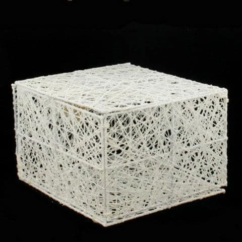 Your imagination can run wild using these mesh boxes to create a beautifully decorated piece. Add lights, ribbon surrounding the box with a bow and ornaments to make a celebration centerpiece. These boxes can work in any holiday occasion. White mesh box measures 4in H x 6in W x 6in L.