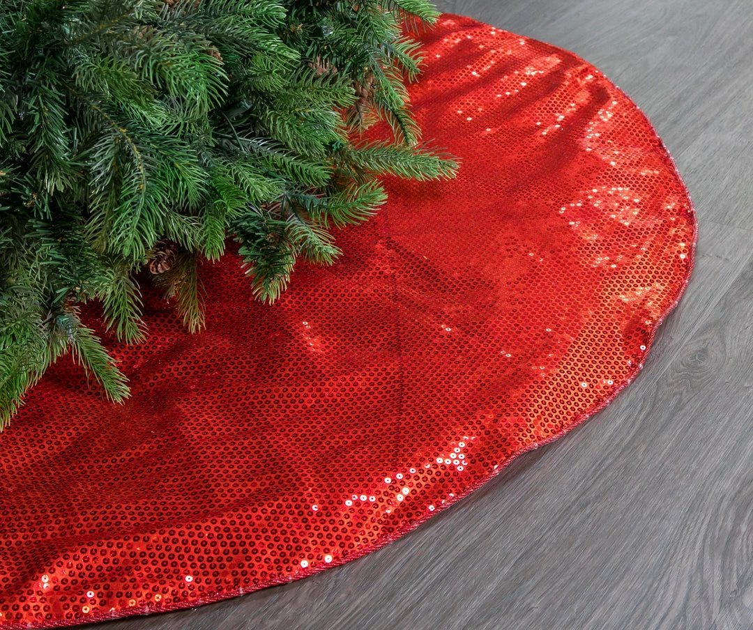New π The π Christmas Palace 48″ RED SEQUIN TREE π SKIRT π