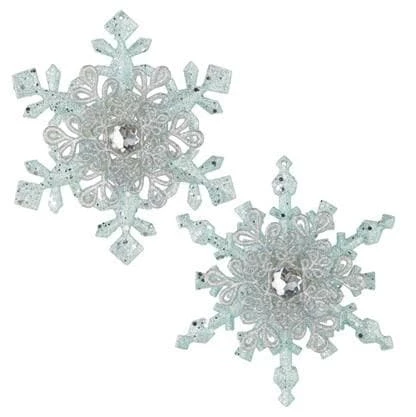 This assorted set of 12 blue and clear snowflakes will add the perfect touch to your winter wonderland.