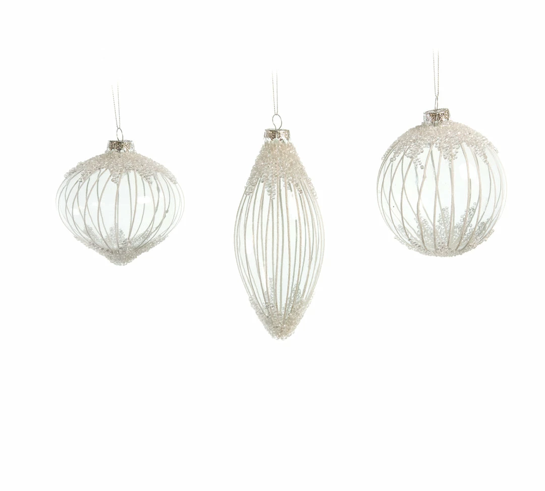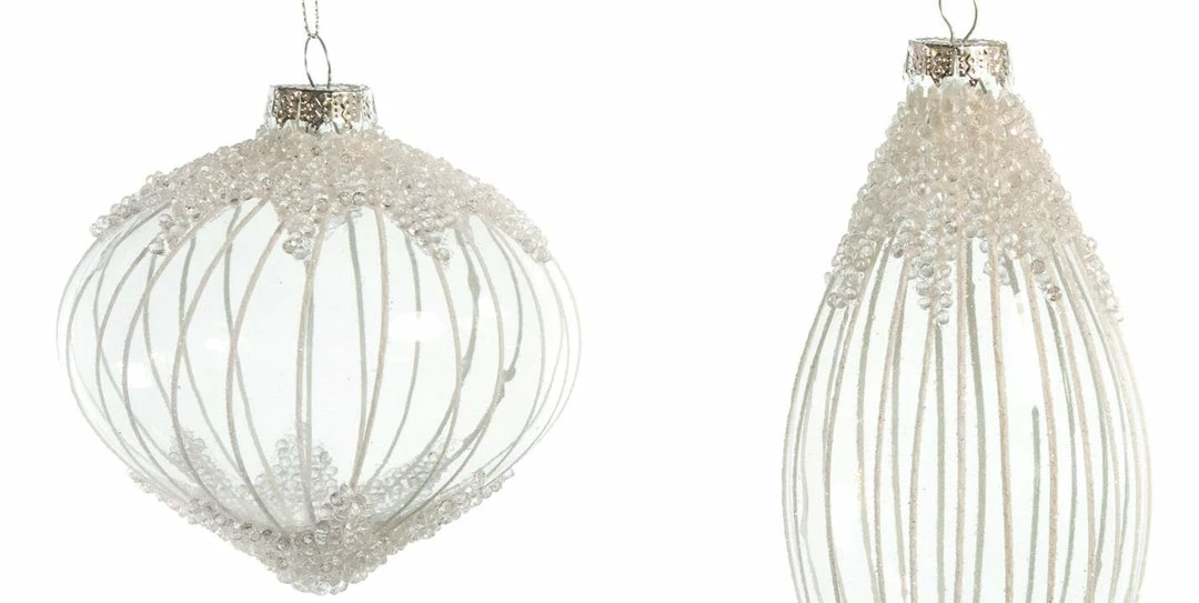 Give your holiday decor a touch of flair with this exclusive set of glass ornaments. These 12 ornaments are designed with beautiful beads and will add glamorous bling to your trees, wreaths, and holiday festivities. A beautiful set ready to compliment your home and Christmas decor with ease!