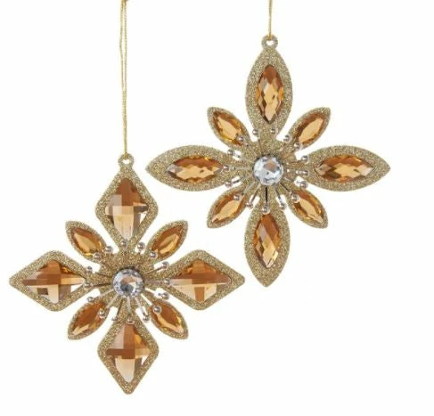 Promo π The π Christmas Palace 5″ GOLD JEWEL SNOWFLAKE ORNAMENT SET OF 12 π Christmas Ornaments π