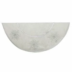 Bring a wintry look to your holiday dΓ©cor with this Ivory tree skirt with Crystal Lace Snowflakes from Kurt Adler. Its all-white design is accented by beautifully-detailed crystal lace snowflakes for an extra festive touch.