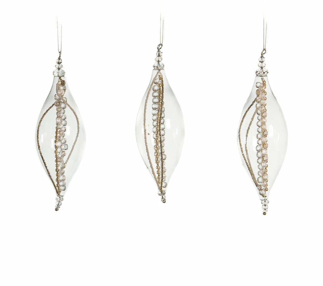 This beautiful antique style glass ornament will add interest to your Christmas tree decor. It features elegantly place beads inside.
