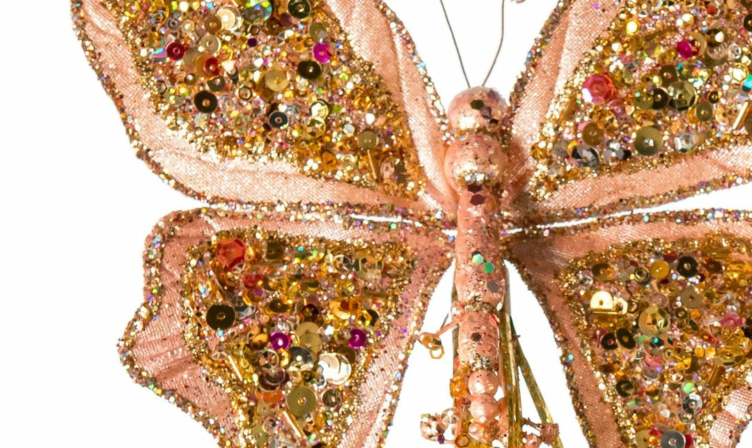 New π― The π Christmas Palace 7″ ROSE GOLD SEQUIN BUTTERFLY SET OF 6 Butterflies π