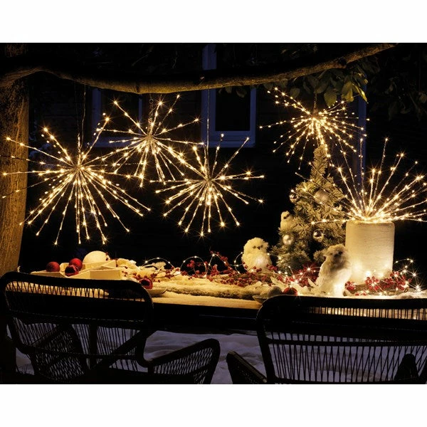 Our Polestar Light is a spectacular addition to any holiday! This gorgeous light features 72 warm white LED lights on soft, metallic, silver wires that can be spread out to create a lovely starburst shape. For added elegance, some of the lights softly twinkle. Perfect to tuck into the branches of your Christmas tree creating points of interest, as a unique tree topper, or to hang from the ceiling for a festive lighting display from above! However you display them, they are sure to look magnificent!