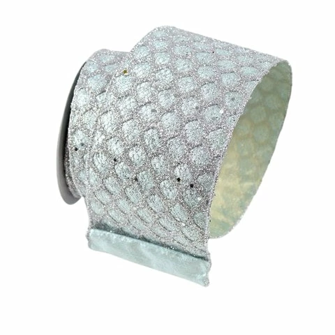 This wired ribbon features fabric in a soft dusty blue color with a diamond pattern encrusted with sparkling glitter, adding a touch of glamour to its simple design. Sewn wire edged ribbon allows you to bend and shape your creations to decorate with ease, making it perfect for decorating Christmas trees, wreaths, or gift accenting. Made in true designer quality, and crafted from the finest materials, this gorgeous ribbon is sure to bring luxury and elegance to your holiday decor! You can also find this ribbon in 2.5″ width.