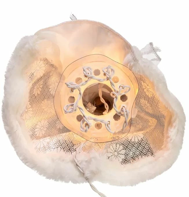 This silver and white angel treetop is a beautiful and festive addition to your Christmas tree and overall holiday decor. The angel’s design includes an intricately-detailed shimmering silver gown which is trimmed in white. Her large ivory wings are accented with white feathers to complete her angelic look. Ten lights illuminate when plugged in for an extra festive glow.