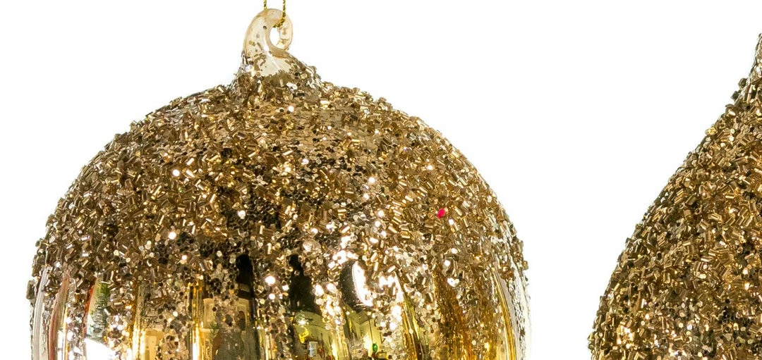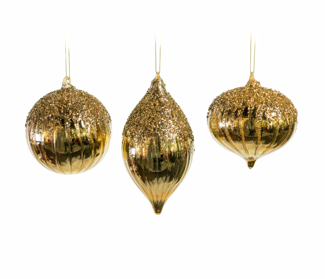 Welcome the winter season to your holiday decor with these rich gold decorated ornaments. These gold shimmering ornament balls will add a touch of sparkle to your trees and wreaths. This set will allow you to build your collection and decorate with more possibilities.