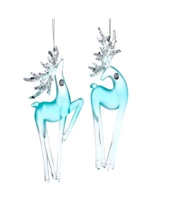 Kurt Adler’s turquoise reindeer ornaments are a festive addition to any holiday dΓ©cor or Christmas tree. This assortment features two turquoise reindeer ornaments in different poses with silver glittered antlers and clear gemstone accents.