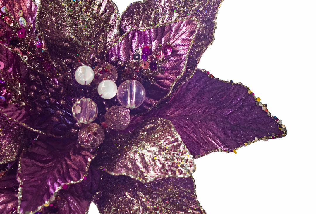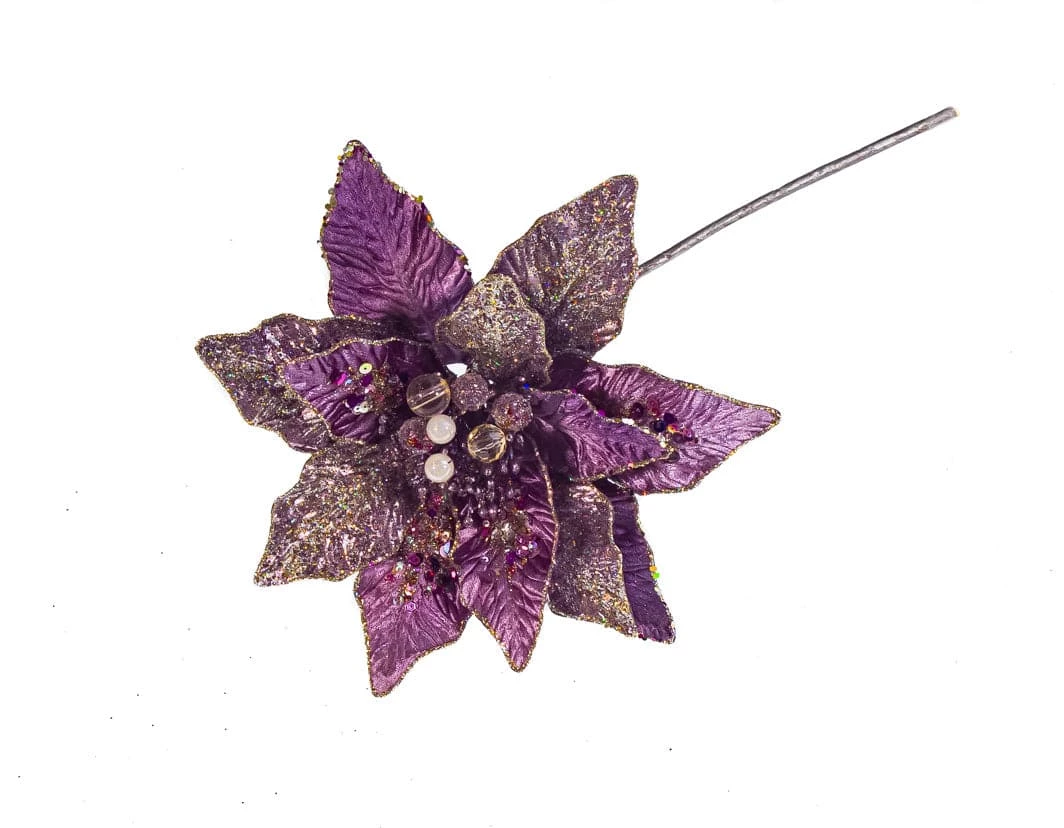 Add beauty and dimension to your tree this holiday season with this stunning poinsettia stem. The soft sequined background, sparkly petals and gorgeous center makes this piece a must-have for your holiday collection.