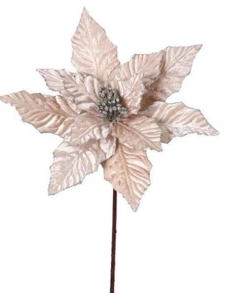 Brand new π€© The π Christmas Palace Flowers 24″ TAUPE GLITTER EDGE VELVET POINSETTIA SET OF 12 π