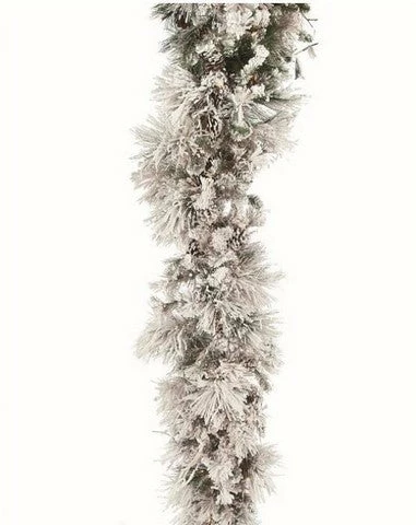 Bring the beauty of winter indoors with a Flocked Bear Mountain garland. The thick branches are laden with heavy snow, creating the ideal holiday accent. This garland ships compressed and may require primping to match the image shown adorn your mantle or stairway banister with this stunning 9′ x 18″ piece with 210 tips, sure to wow all who come to celebrate this holiday season.