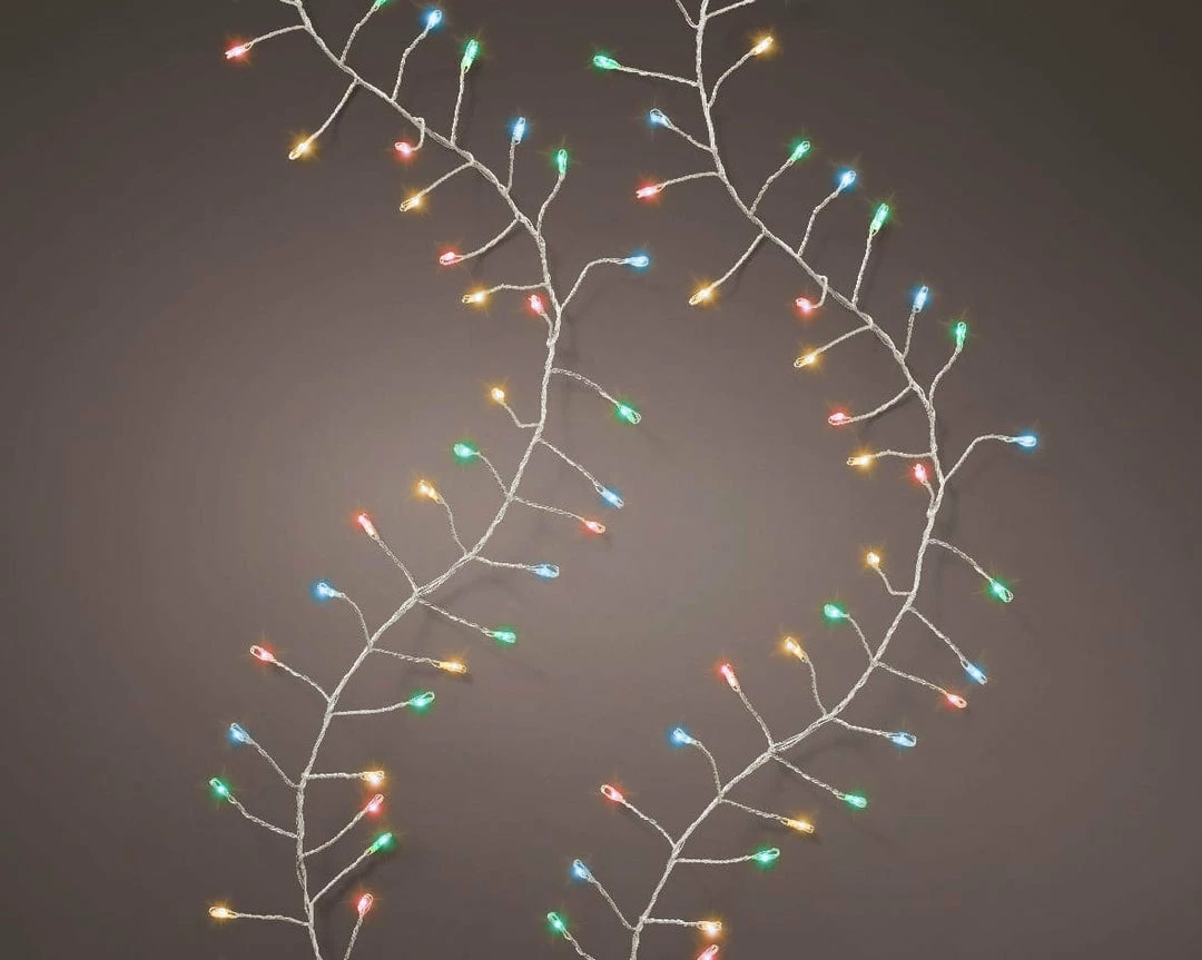 This 20 Ft Multicolor compact light string on a silver wire has 8 different twinkle functions featuring 480 Micro LED lights.