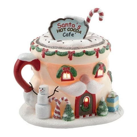 A part of the North Pole Collection, inspired by magic and charming legends. This Santa mug shaped building is a favorite hang-out for all hard working elves. Hand-crafted & hand-painted porcelain lit building, Includes light cord & bulb.