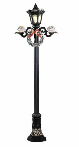 Set the scene for London at Christmas time with this 42-inch tall, battery operated street lamppost. Exquisitely detailed, the lamppost has a small wreath with authentic-looking red ornament accents affixed right under the lampβs light. Made of Resin and Acrylic.