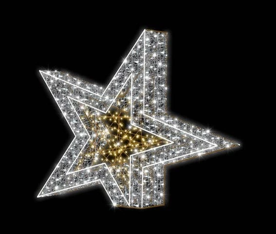 Brighten your property with a dazzling lit Star Display illuminated with warm white & cool white LED lights and built on a durable framing for indoor or outdoor commercial holiday decoration.