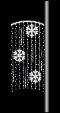 Create a spectacular lighting display with our Snowflake Shower banner! This lighting sculpture measures an impressive 7′-3′ and has a sturdy construction making it ideal for large display and commercial use. Featuring strands of cascading lights accented with classic snowflakes, crafted in long lasting, energy efficient, pure white LED lights. The combination of the design of the dangling lights, snowflakes, and true white light color give the overall appearance of delicate snowflakes gently falling from the sky. This lovely piece is perfect for hanging over an entrance, between trees, or light poles. However you display it, it is sure to be a dazzling show piece in your holiday lighting display!
