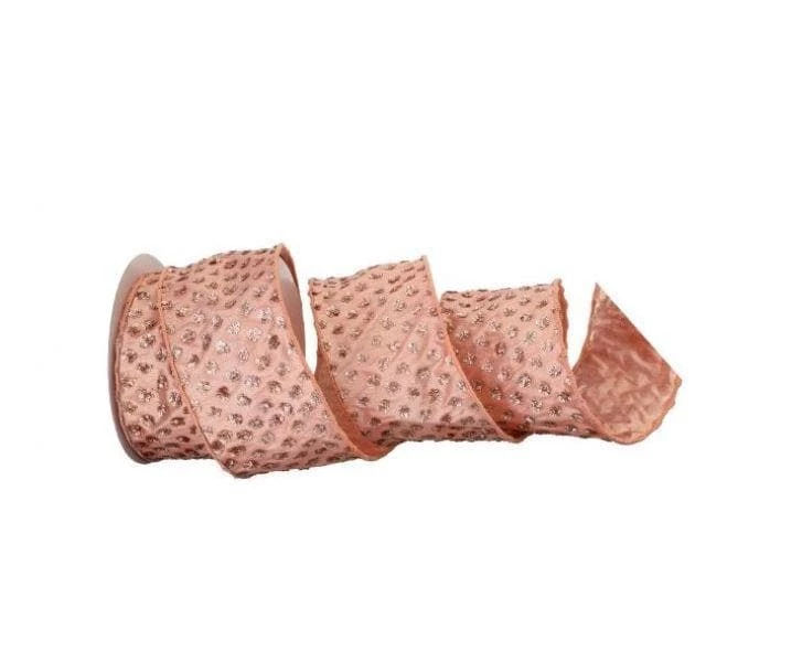 This beautiful piece features a 4″ wide pink champagne toned ribbon accented with sequined dots. A stunning addition to any rose gold or pink decor.