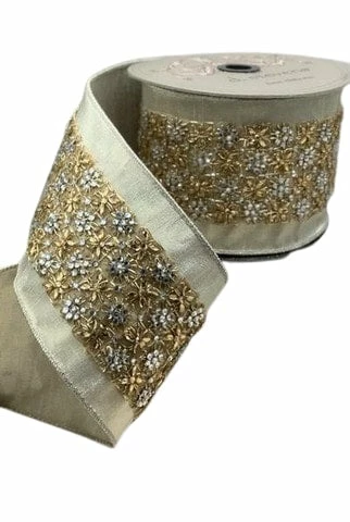 Best deal βοΈ The π Christmas Palace Ribbon & Bows 4″ X 5YD METALLIC DUPION GOLD AND SILVER JEWEL TRIM π