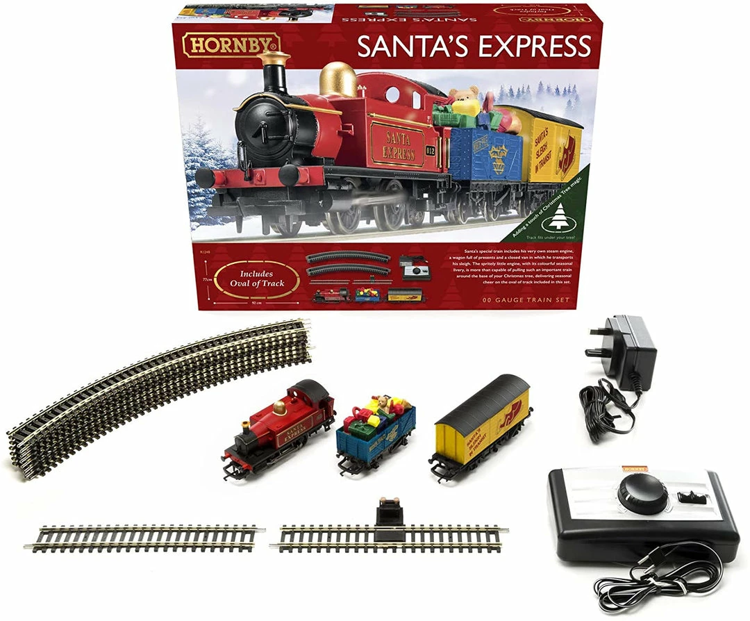 All aboard the Santa express! Whether it’s the ideal gift or a vintage Christmas decoration, celebrate this season with this Santa’s Express Train Set. This festive analogue train set comes with a present-filled wagon and sleigh van. Because of the oval track included in this set, why not place it under the Christmas tree to add the perfect seasonal touch.