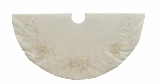 This Kurt Adler 54-Inch Ivory with Pearl Beads Tree Skirt is a beautiful, festive way to add to the dΓ©cor of your Christmas tree! This tree skirt is made of polyester and it features a delicate ivory beaded flower design on an ivory background with a smooth edge. It makes an elegant addition to any home dΓ©cor.