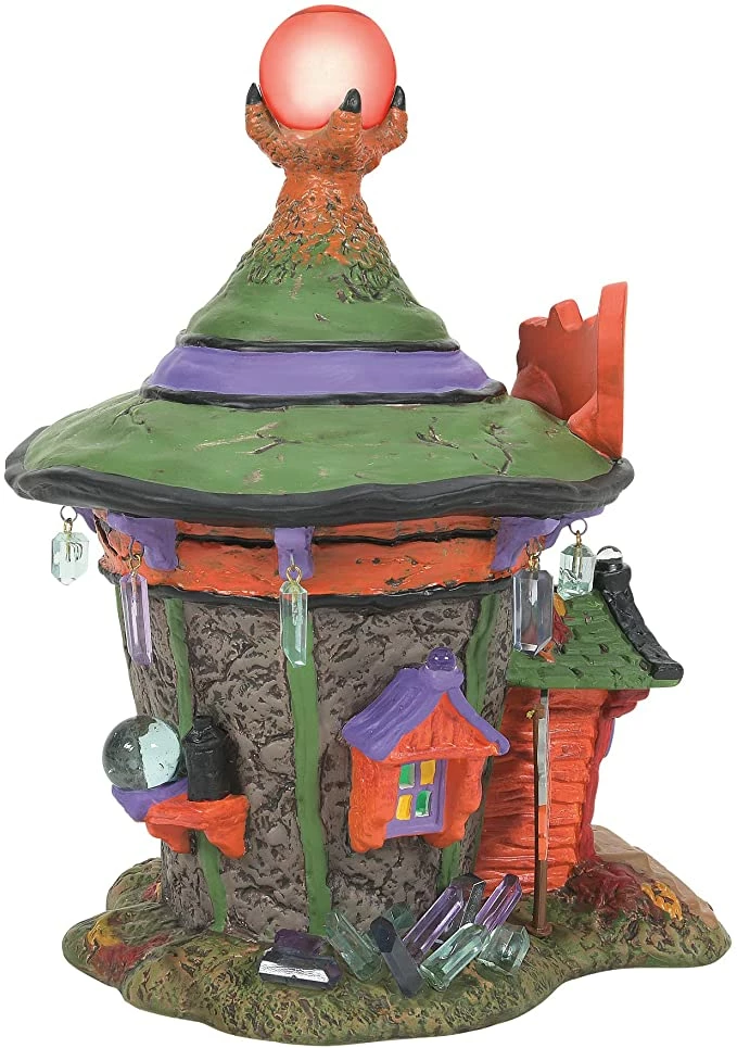 Customers can enter this business to buy a mysterious crystal. Some bring good luck, others can cast a spell. The piece is another circular building with a witch hat roof and LED color-changing crystal on top.