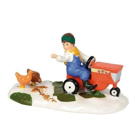Young farmer learns early that a toy tractor will get him anywhere he needs to go on the farm, and makes feeding the chickens all the more fun!