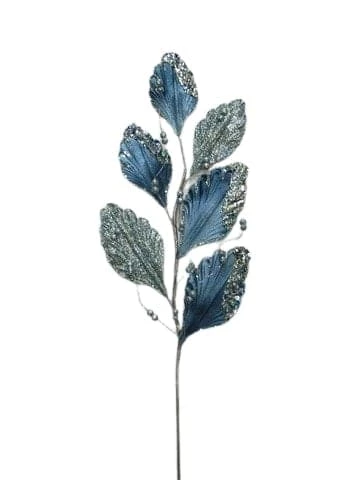 Adorable Blue-Gray leaves branch has blue leaf accents, featuring some glittery sequins. It’s perfect to add a pop of color to any floral arrangement, centerpiece, or incorporate it into your holiday decor.