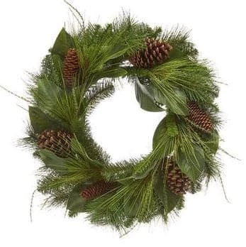 Add this to your holiday decor this season. The Pine Leaves, Magnolia Leaves, and Pinecones Give This Piece a Natural Look Perfect for Any Door or Wall.