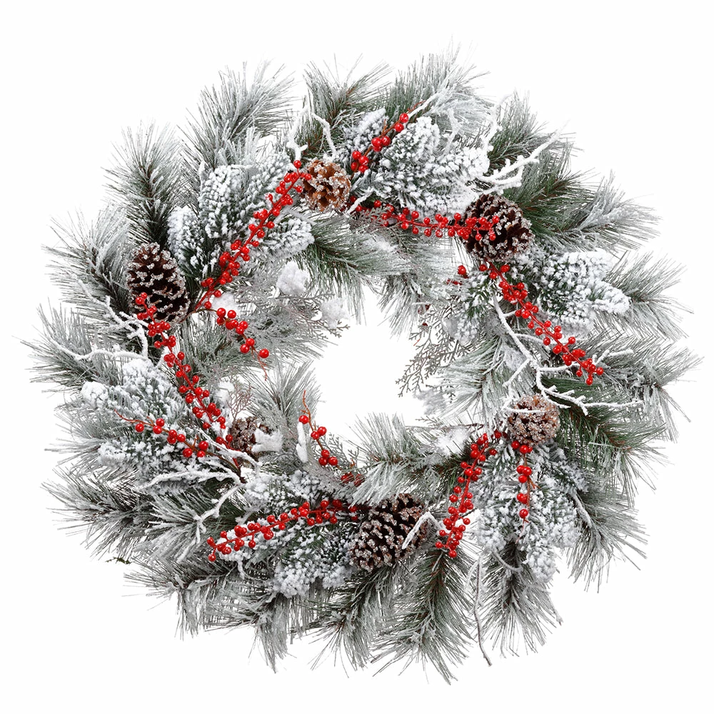 New π The π Christmas Palace Wreaths 30″ RED SNOW PINE CONE WREATH UNLIT π